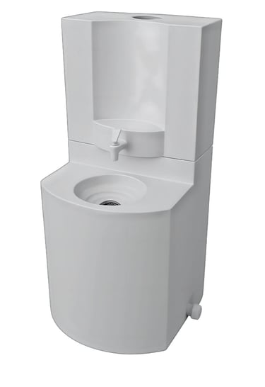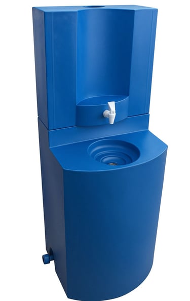 El lavamanos portátil incluye dispensador de agua, jabón y toallas de papel con deposito interno de aguas grises.